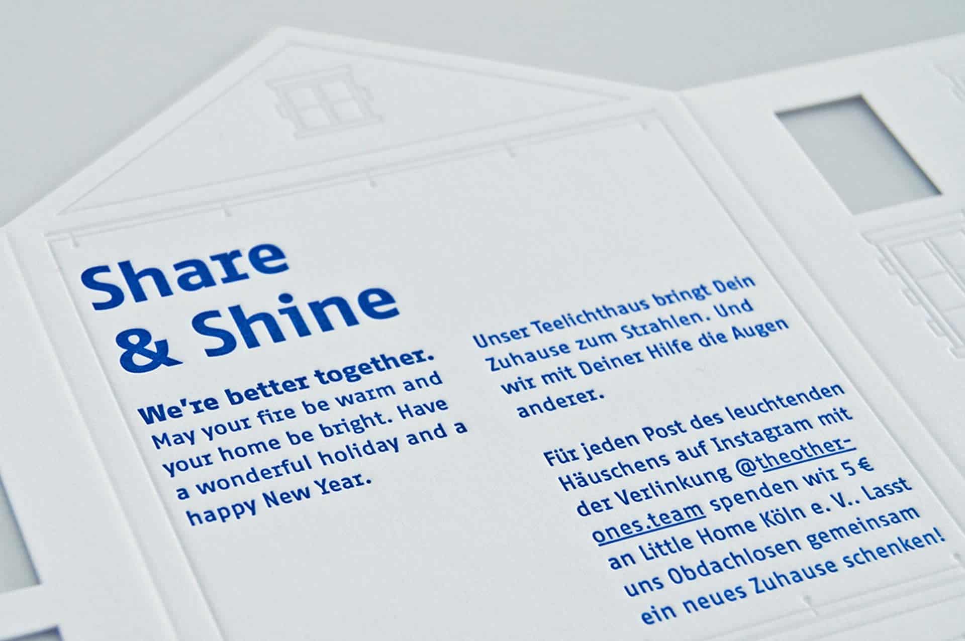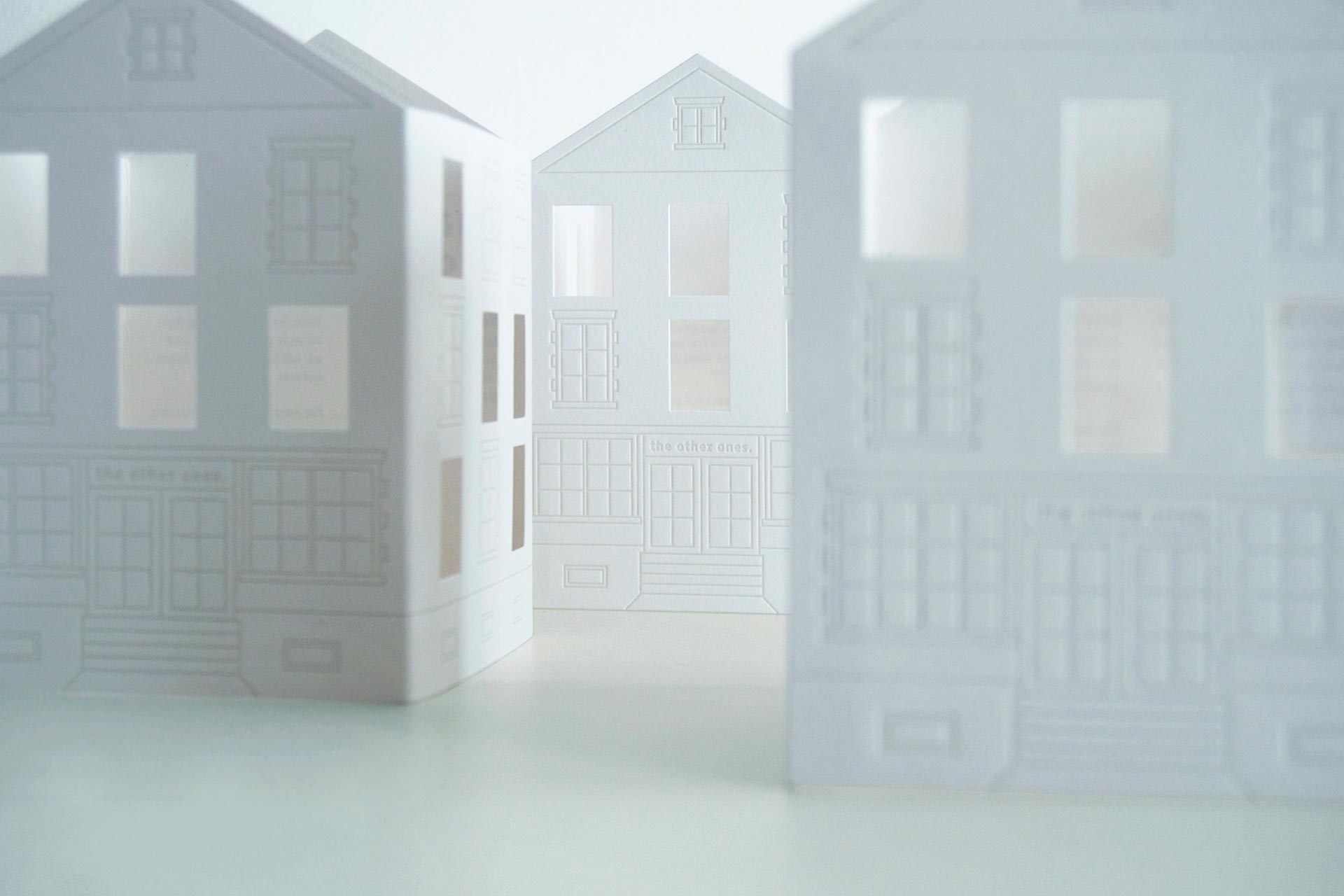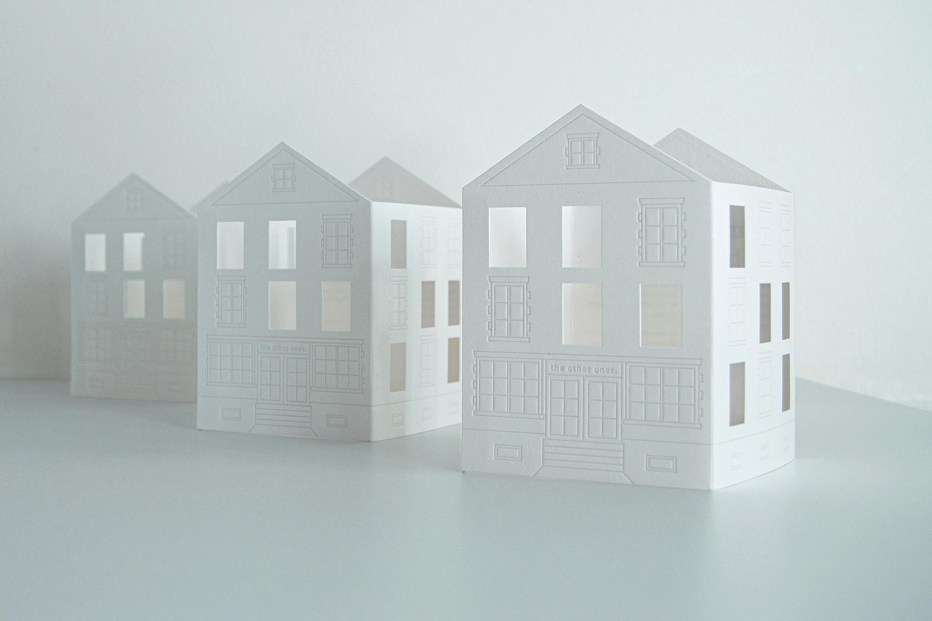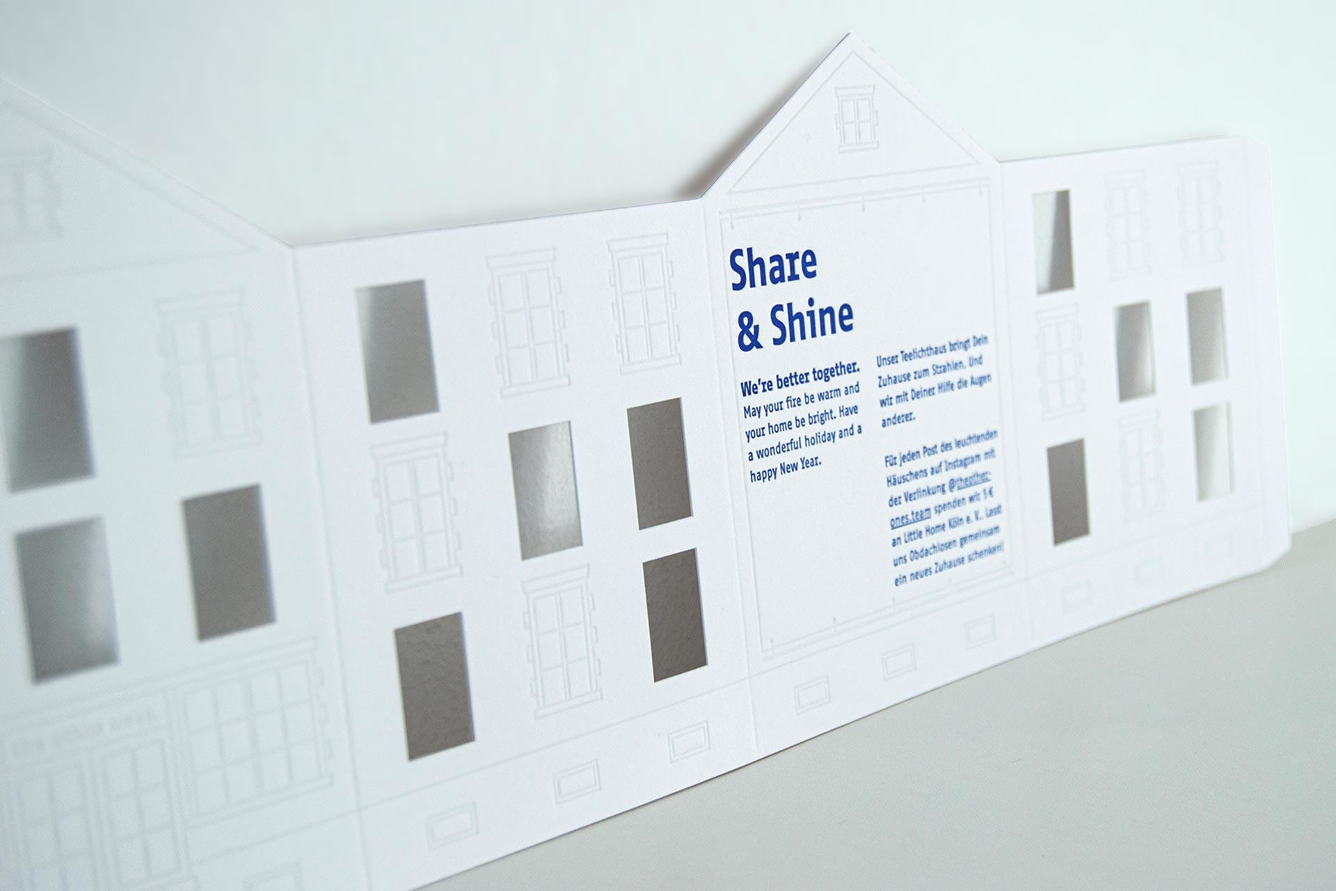 Das Weihnachtshaus unter den Weihnachtskarten. Nach der Weißmuster-Bereitstellung folgte die Auflagenproduktion mittels Letterpress und exakter Stanzung.